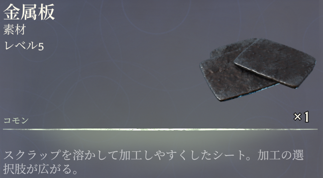 • 鍛冶場にて 木炭*2 スクラップ*2 で1個作成可能