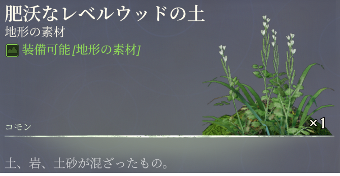 • レベルウッド・ブラックマイア地域において表面の草の生えている土をつるはしにて採掘
