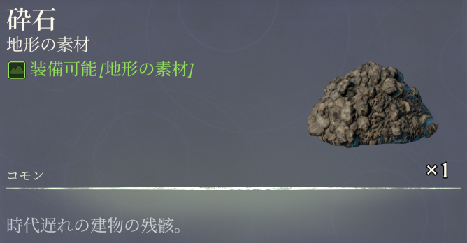 • 崩れた建物などをつるはしで破壊した際に入手できる