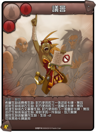 還包括音影,將領珈瑪,議員沙利亞,天使,桑娜。但這套卡組有致命的缺點,這個缺點和茶道,操控的問題一樣,如果對手和自己的部落不同,茶道的就無效,操控威力減半。遇到海盜或是塞弗,基本無解。