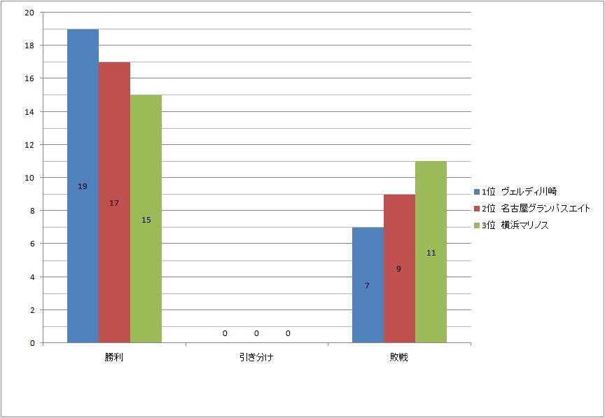 リーグ上位3チームの勝敗の違いをグラフにして、分かり易くしましました。