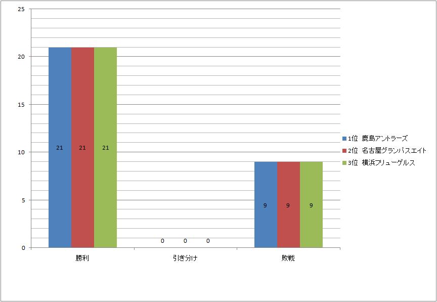 | 1位 鹿島アントラーズ | 21 | 0 | 9 |