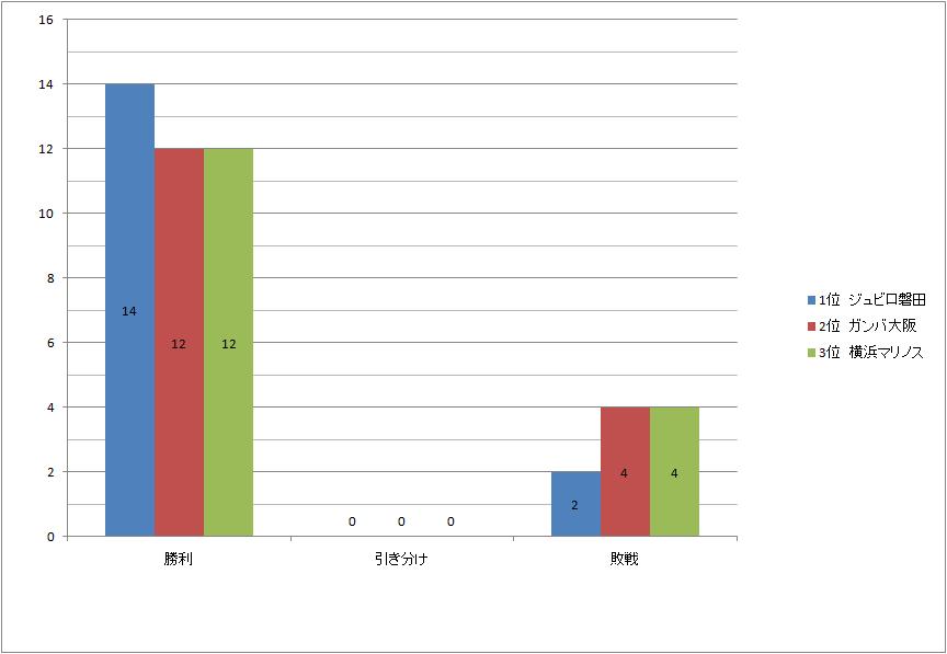 リーグ上位3チームの勝敗の違いをグラフにして、分かり易くしましました。