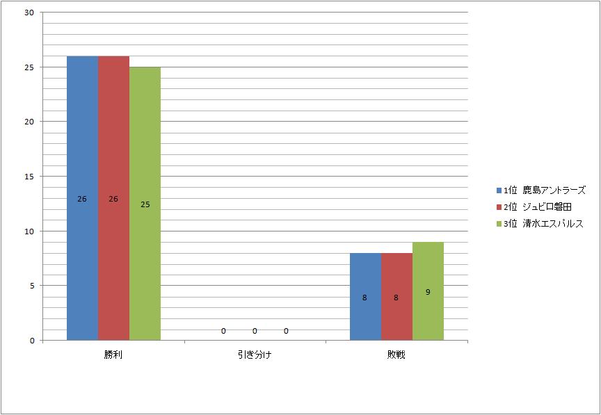 リーグ上位3チームの勝敗の違いをグラフにして、分かり易くしましました。