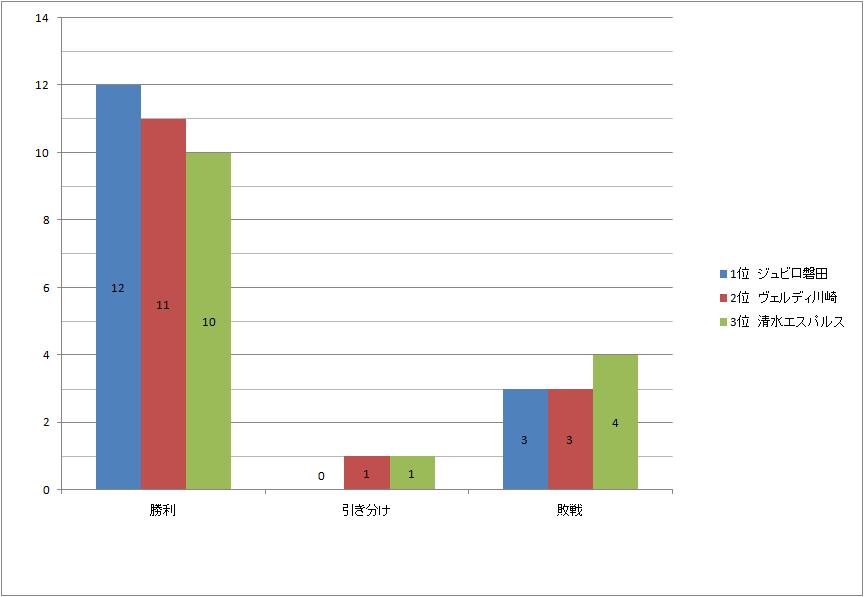 リーグ上位3チームの勝敗の違いをグラフにして、分かり易くしましました。