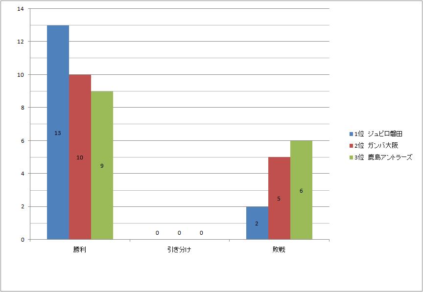 リーグ上位3チームの勝敗の違いをグラフにして、分かり易くしましました。