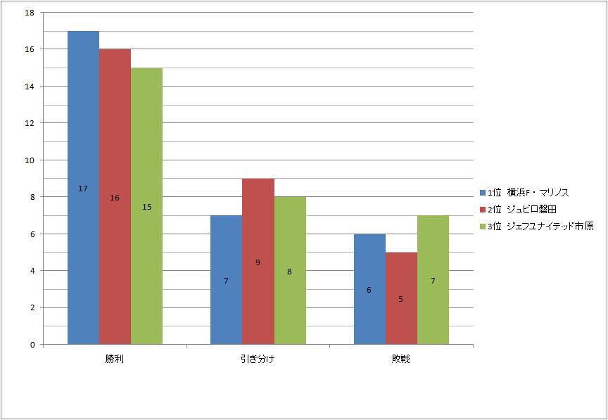 リーグ上位3チームの勝敗の違いをグラフにして、分かり易くしましました。