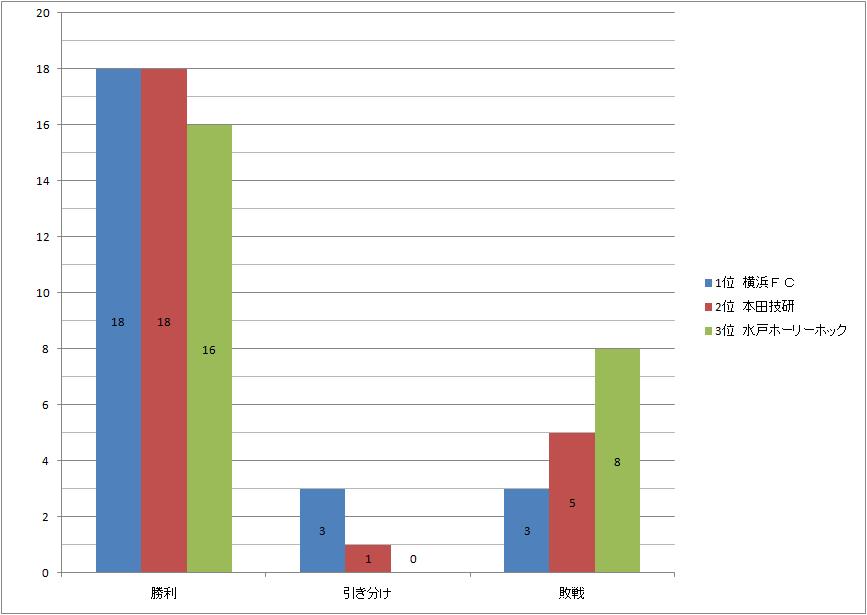 JFLリーグ 1999年 リーグ上位3チームの勝敗の違い