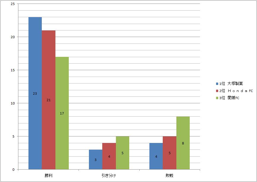 リーグ上位3チームの勝敗の違いをグラフにして、分かり易くしましました。