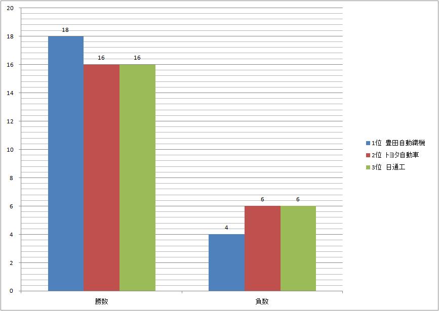 リーグ上位3チームの勝敗の違いをグラフにして、分かり易くしましました。