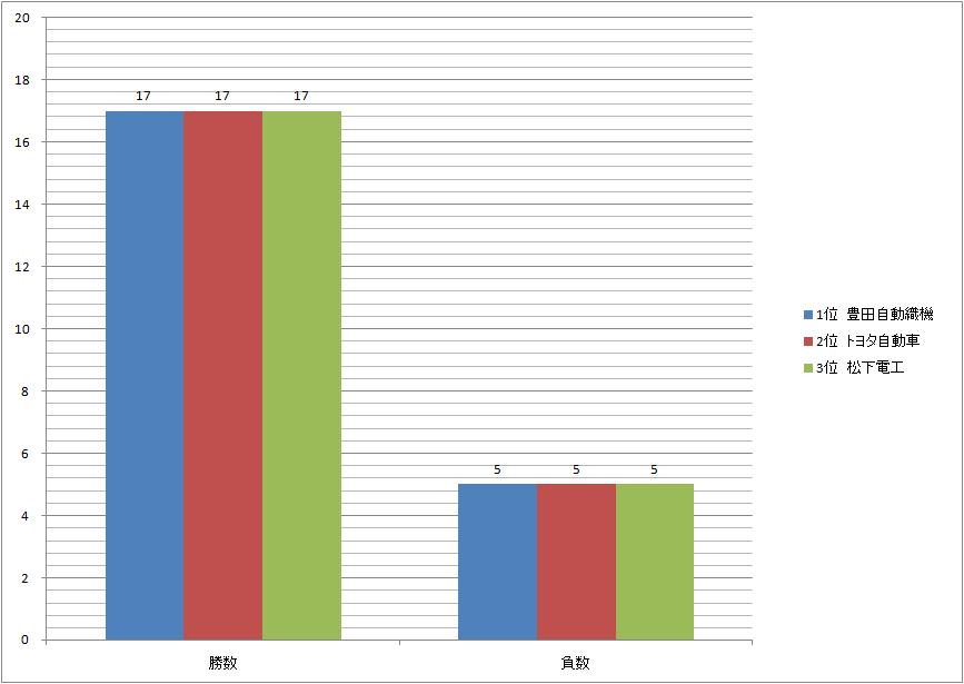 リーグ上位3チームの勝敗の違いをグラフにして、分かり易くしましました。