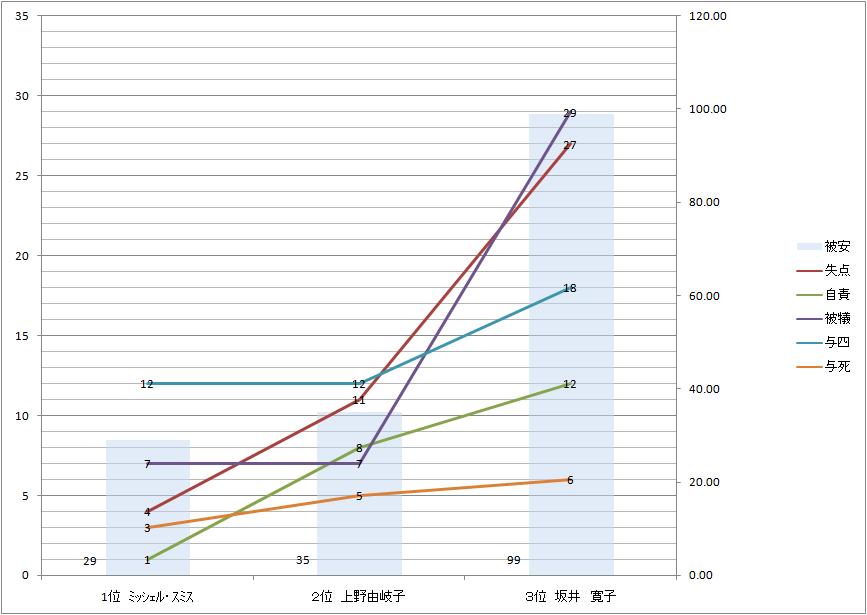 | 2位 上野由岐子 | 35 | 11 | 8 | 7 | 12 | 5 |