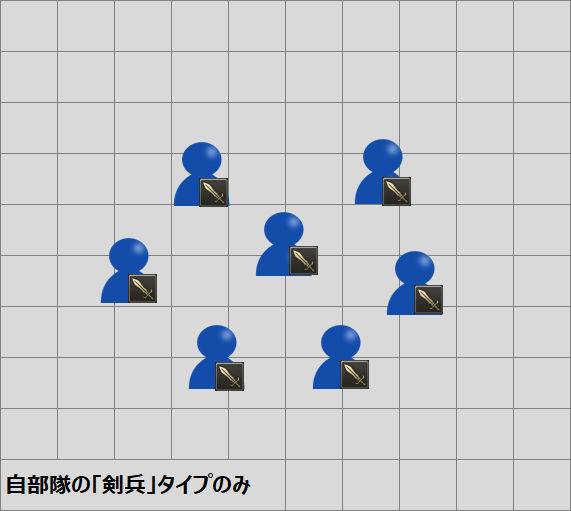 このゲームでは敵を倒さないとただのじり貧+タイムアップになるので、うまく使おうとすると使用する剣兵とアタッカーのバランスが難しい。指揮官の手腕が問われる。
