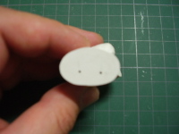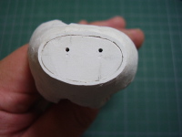 同じく上半身の分割箇所を平面にし、周囲の凸凹をきっちりと直し、1mmの穴を2箇所あけています。