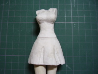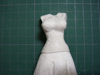 まずは腰の部分とスカートの接合箇所をしっかりと作っていきます。この場合のしっかりとは、平面にする、腰の部分の分割箇所の楕円状の周囲を凸凹にしない、スカートと腰の部分との隙間をなるべくなくすという3箇所になります。