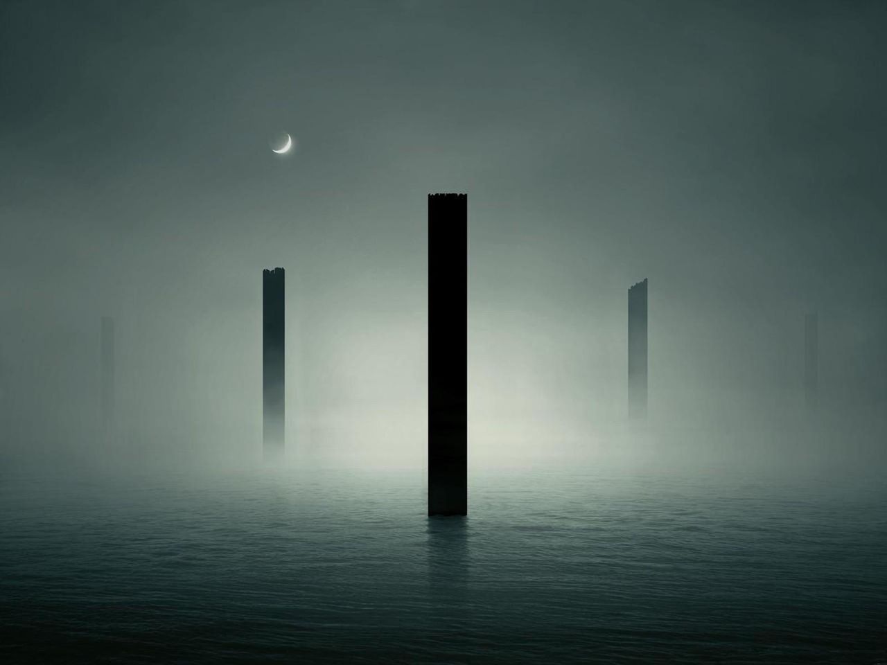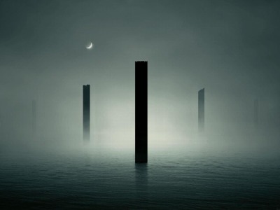 霧が私の体を押しとどめようとする。空には三日月が浮かんでいた。』