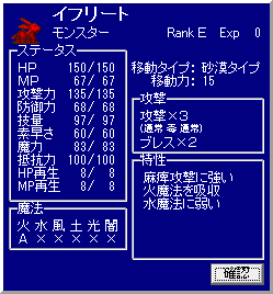 - 無意味にサラマンダーを攻撃中に成長させるとイフリートが出来ます。ただし、成長した頃には戦争終了www -- tekichan (2009-05-06 23:30:58)