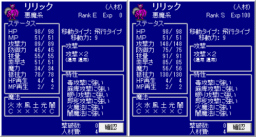 悪魔系放浪人材。耐性はそれなり、闇Cランクなので魔力強化も出来る。