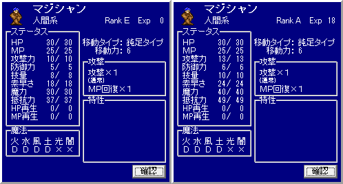 -  マジシャン系最下級ユニット。Dランクだが火水風土の系統が使えるので、後衛兼状態異常回復役くらいには使える。