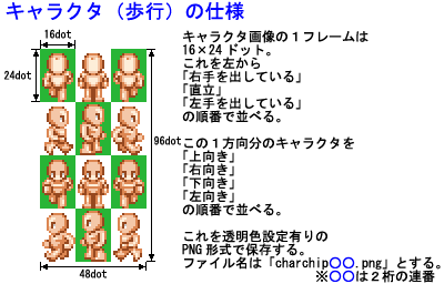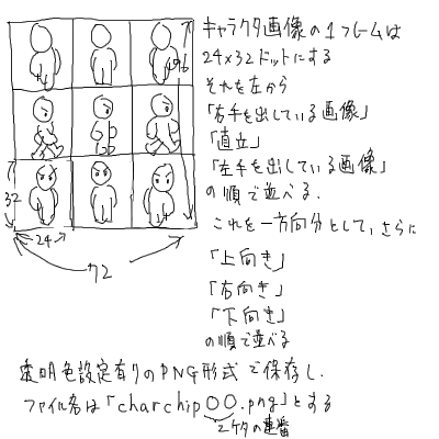 64*64サイズで画像の中心(32x32地点)に武器の根元が来るカタチで