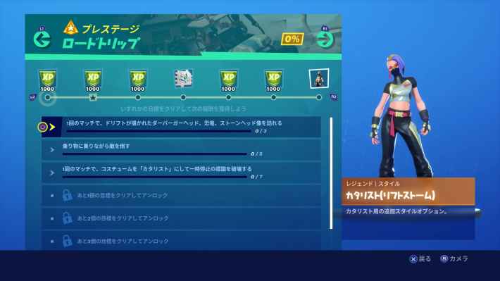 1回のマッチでコスチュームを「カタリスト」にして、一時停止の標識を7個破壊する |