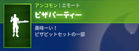 フォートナイト(Fortnite)のエモート「ピザパーティー」の情報をまとめています。実際の動画を掲載していますので、ピザパーティー購入する際の参考にしてみてください。