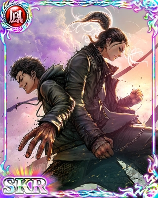 後衛[暴]【役完成】四面楚歌の二鬼 消費手札P 40 単体使用回数 1回 [減少][敵全員][増加][自身・味方全員] [敵気絶者5人・劣勢時:確率でスキル使用回数消費なし] [使用回数に応じて暴の構え威力・効果増加][複数奥義効果] [水の構え・海王の構え:回数消費なし][役完成:ツーペア][1回] |