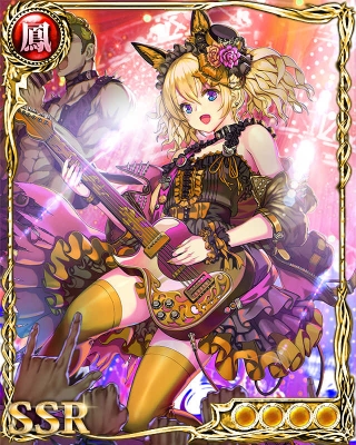 前衛[水]みんな歌ってぇ! 消費手札P 30 単体使用回数 1回 [増加][味方全員][水の構え:サポスキ発動率増加] [水奥義共鳴数で効果増加][1回] |