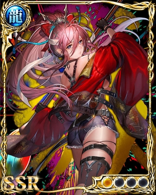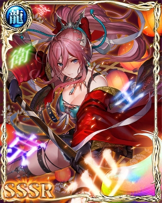 【使用後フォーカード完成】 ・敵全員に極大ダメージを与え、更に味方全員の全パラメータが特大アップし、手札Pが大回復する。 ・気絶するほどのダメージを与えても敵のHPを最低1残す。 ・暴の構え発動時は威力が更にアップし、50%の確率で最も戦闘力が高い味方前衛1人の特攻パラメータを使用して攻撃する。 ・覚醒の構え発動時、参戦者優先で味方後衛1人の全パラメータも特大アップし、前衛と後衛アップ対象の封じられたサポートスキルを1つ使用可能にする。 ・智の構えの効果も受ける。 ・智の構え発動時、智属性スキルの効果が増加するサポートスキルも発動する。 ・レベルが上がると威力と効果が増加する。 |