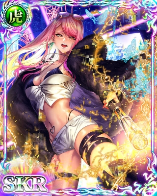 後衛[暴]【役完成】魅惑のおしおきタイム 消費手札P 40 単体使用回数 1回 [減少][敵全員][強制HP1][増加][自身・味方全員] [敵気絶者3人以上:確率でスキル使用回数消費なし・異常解除] [暴の構え:役効果増加付与] [使用回数に応じて暴の構え威力・効果増加][複数奥義効果] [智の構え:無双開眼準備時間短縮・無双開眼奥義時間延長] [役完成:フルハウス][1回] |