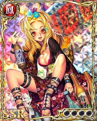 前衛[暴]アタシと飲み比べよ! 消費手札P 15 単体使用回数 2回 [増加・手札P回復][自身][減少][敵全員] [使用回数に応じて暴の構え威力・効果増加][暴の構え:回数消費なし] [複数奥義効果][焔帝の構え:回数消費なし][2回] |