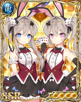 後衛[水]双光のうさぎ 消費手札P 0 単体使用回数 3回 [減少][敵全員][回復][自身][特殊条件:ダウン効果2倍] [劣勢時:減少][敵後衛1人] [海王の構え:手札P全回復・特殊条件:手札Pダウン強制1] [水の構え:アップ効果無効化][3回] |