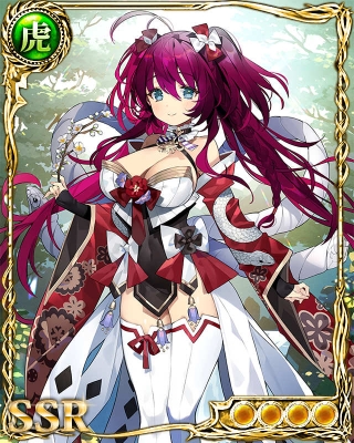 前衛[暴]【役完成】邪恋に宵闇と戯れよ 消費手札P 30 単体使用回数 2回 [攻撃][敵1人][増加][自身][敵コンボ加算][コンボ+20] [敵気絶:確率で使用回数消費なし] [暴の構え:回数消費なし・サポスキ発動率増加・特殊条件:威力増加] [スリーカード:手札P消費なし][役完成:スリーカード][2回] |