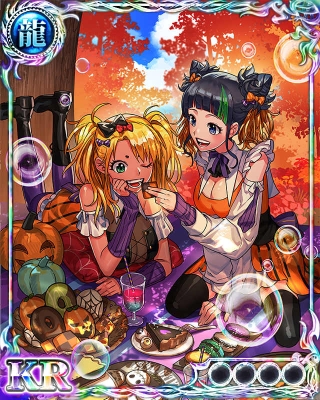 | 前衛[水]【役完成】下北ハロウィンパレード! 消費手札P 30 単体使用回数 2回 [増加][味方全員][前衛スキル回数+1] [水の構え:サポスキ発動率増加][海王の構え:回数消費なし] [複数奥義効果] [焔帝・嵐皇・智・暴の構え:該当属性サポスキ発動] [敵チーム【諸刃】暴の構え:奥義時間短縮] [役完成:フラッシュ][2回] |