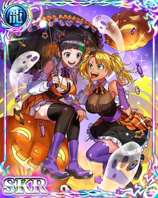 | 前衛[水]【役完成】下北ハロウィンナイト! 消費手札P 20 単体使用回数 3回 [増加・HP回復・手札P回復][味方全員] [水の構え・【諸刃】水の構え:サポスキ発動率増加・奥義時間延長] [海王の構え:回数消費なし・ダメージ反射・最低HP1] [複数奥義効果] [焔帝・嵐皇・智・暴の構え:該当属性サポスキ発動] [役完成:ストレートフラッシュ][3回] |