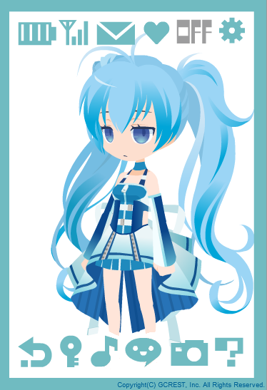 | 詳細設定 | 人工人間の少女。誰が作ったのか不明。 携帯や、パソコンになどの電化製品に入り込める(電柱などにも入れ、移動も可)。 データでできているので、あまりないが充電がなくなると自動的にスマホに戻る(スマホはいつも充電まんたん)。 スマホの中に入れば足がうっすら消える。結構感情が顔に出る。 |