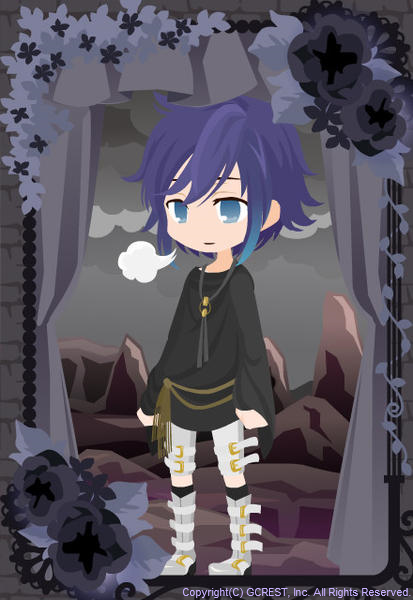 | 外見的特徴 | 憂いを帯びた青緑の瞳。 青みがかった髪。 少年らしい面持ちをしながら、どこか大人びた表情を見せる。 黒い服が好き。 |