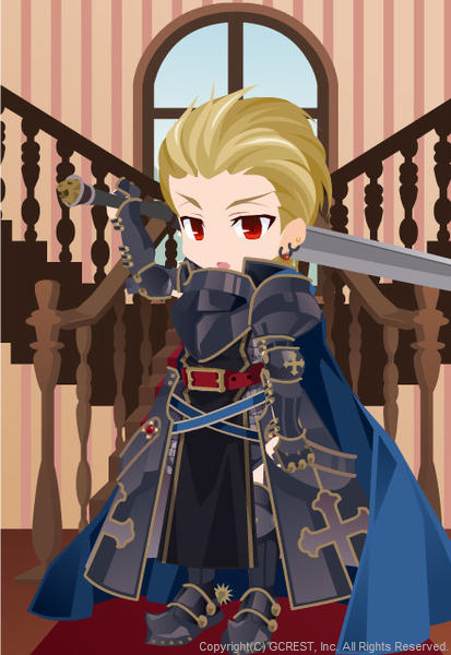 | 外見的特徴 | 金髪をオールバックにした、屈強な大男。 198cm、85kgの巨漢。 戦士という言葉がよく似合う、鍛え抜かれた体躯。 戦闘時は全身鎧を着用。 |