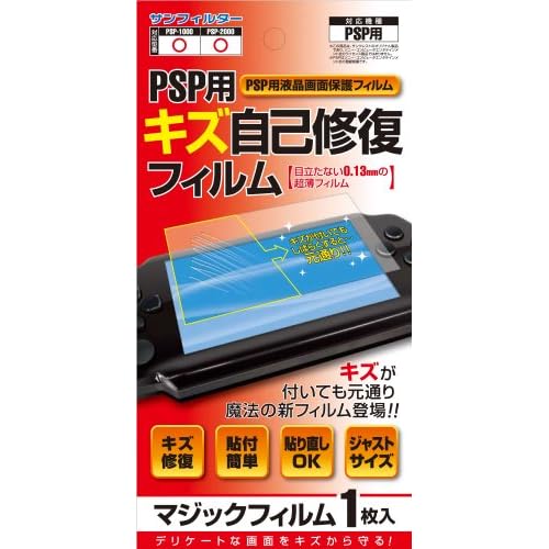 | imageプラグインエラー : 画像を取得できませんでした。しばらく時間を置いてから再度お試しください。 | サイバーガジェット | ¥ 680 | 〇 | 〇 | 〇 | 液晶画面についた細かな傷がスーッと消える!! フィルムについた傷が自然と修復するPSP用液晶保護フィルムです。 本製品を装着すれば、PSP本体の液晶画面を傷や汚れから保護できるだけでなく、 フィルム自体についた細かな擦り傷まで修復します。 ※キズ修復層を貫通する深いキズには効果を発揮しない場合がございます。 フィルムを液晶画面にのせるだけでスーッと貼りつくので、フィルム装着が苦手な人でも簡単に貼り付けが可能。 シリコン粘着を採用しているので、位置がずれても何度でも貼り直しができます。 |