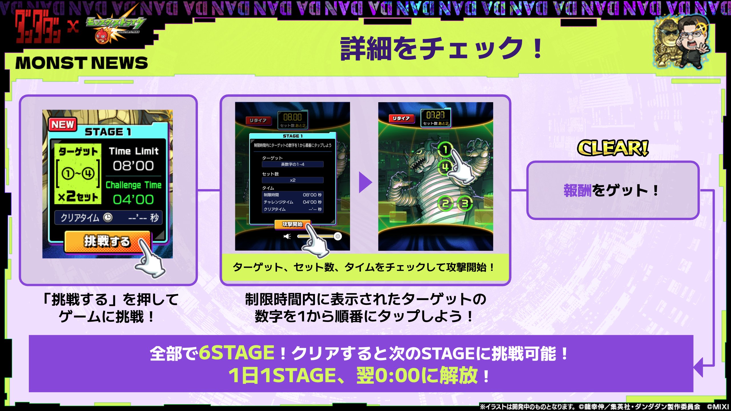 | 究極 | なんかモヤモヤするじゃんよ | ドーバーデーモン | 1日1回クリアで+7体獲得 |