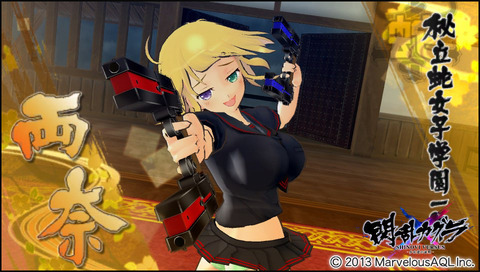 ちなみに本作における両奈の武器は赤と青のダブルファング四丁拳銃で、