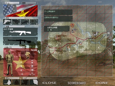 基地と旗の距離、配置から見て、北ベトナム軍が不利なMAP。