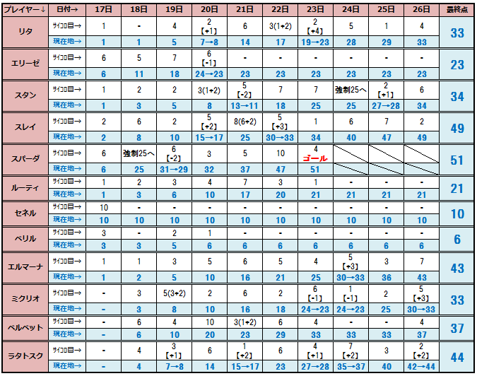 すごろく結果まとめ☆