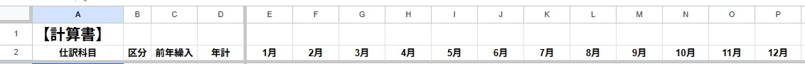 - 計算書 仕訳項目について1-12月集計を一覧するシート(未完成)
