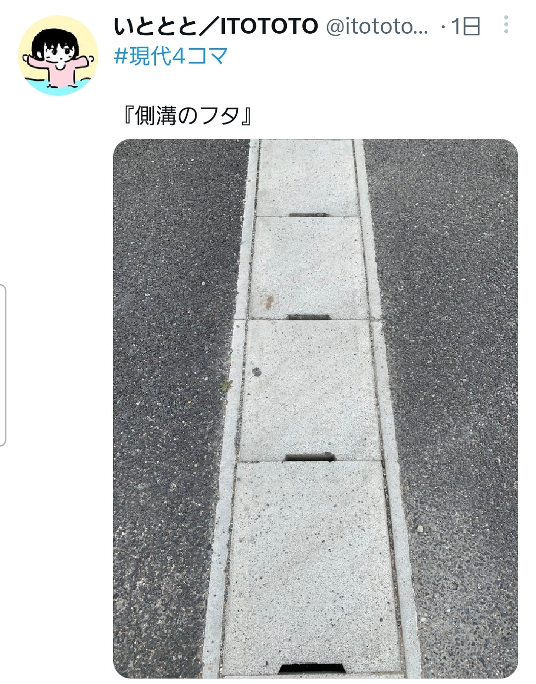 上記画像の4コマは側溝のフタを中心とする(アスファルト部分との区切りで解釈する事等も含めて)枠の探求が主体なので「コマ派」に分類される。