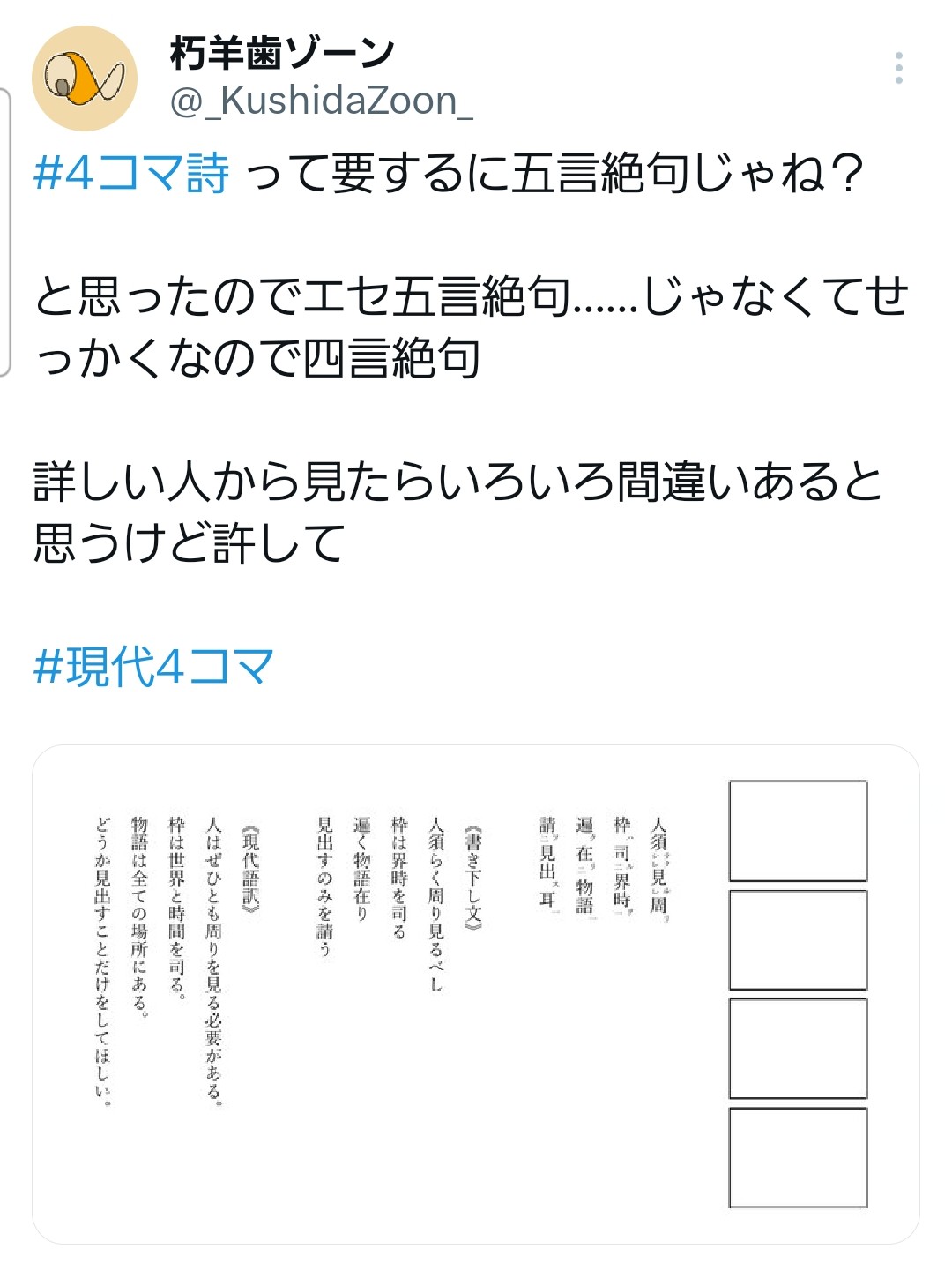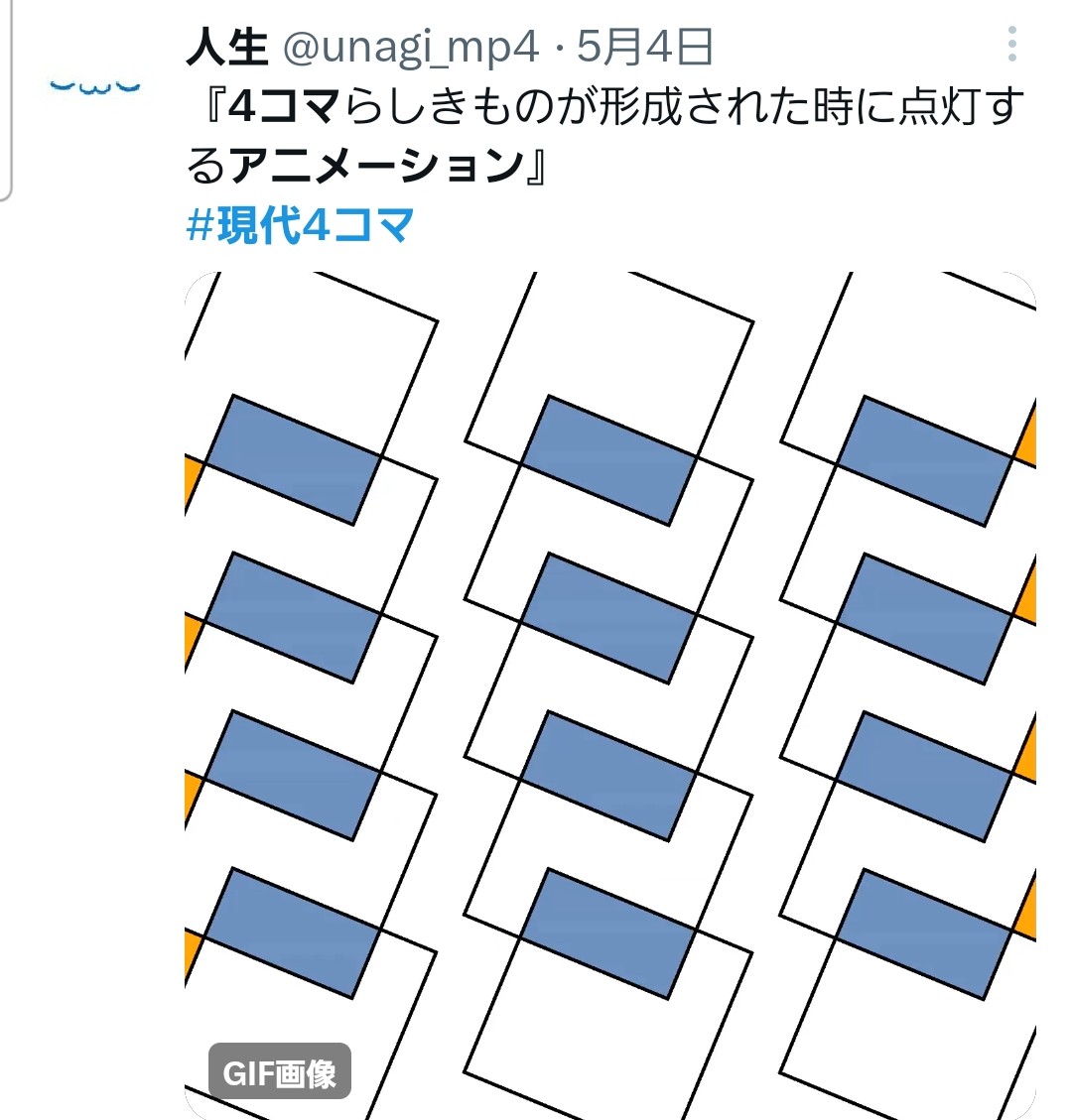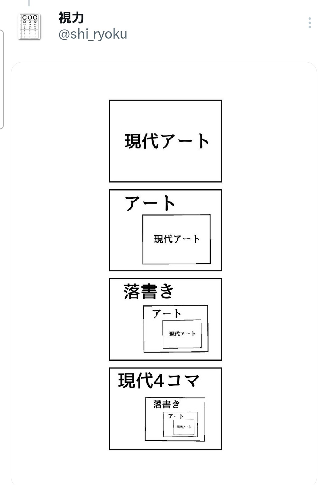 4コマの造形そのものを枠組みでなく、物質として捉えなおそうとする運動。それによってコマ外への実質感覚が生まれ相対的に作品の境界領域にも空間理解が発展している。コマを枠内の世界表現だと認識していた場合にその世界に閉じ込められているのは我々の方だと気付かされる。