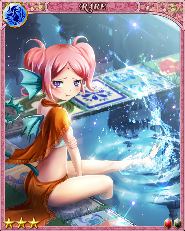 Rank:3 必要姫力:7 属性:水 種族:海棲 年齢:13 身長:150 体重:45 B:74 W:50 H:77 趣味:思いっきり遊ぶ