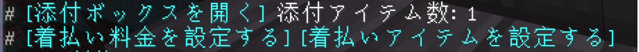 添付アイテム数が1以上の時、着払いアイテムを設定することができます(着払い料金は使用不可)