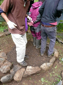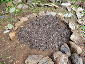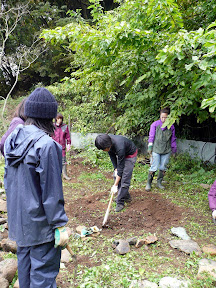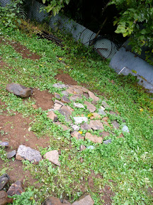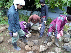 のをどけて、砂利を敷いて、きちんと石を並べるため整地。