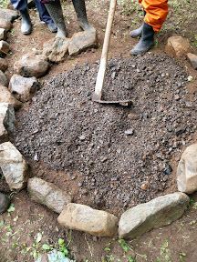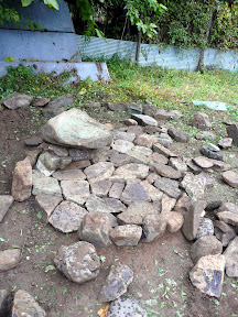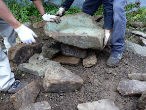 前回、腰掛用に拾っておいたでかい石をまず置くことに。